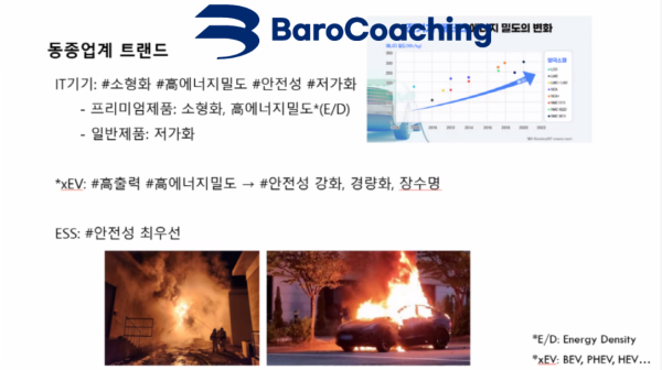 - 배터리 산업에서 흔히 연상되는 화학공학 중심의 인재상에서 벗어나, 기계.전기전자 전공자도 진출 가능한 진입 전략 공유