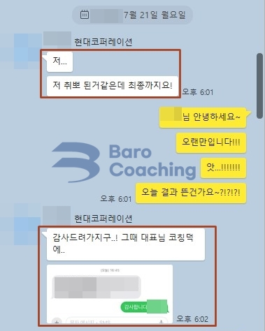 바로코칭에서 컨설팅 받은 학생의 현대코퍼레이션 면접 합격 후기입니다.