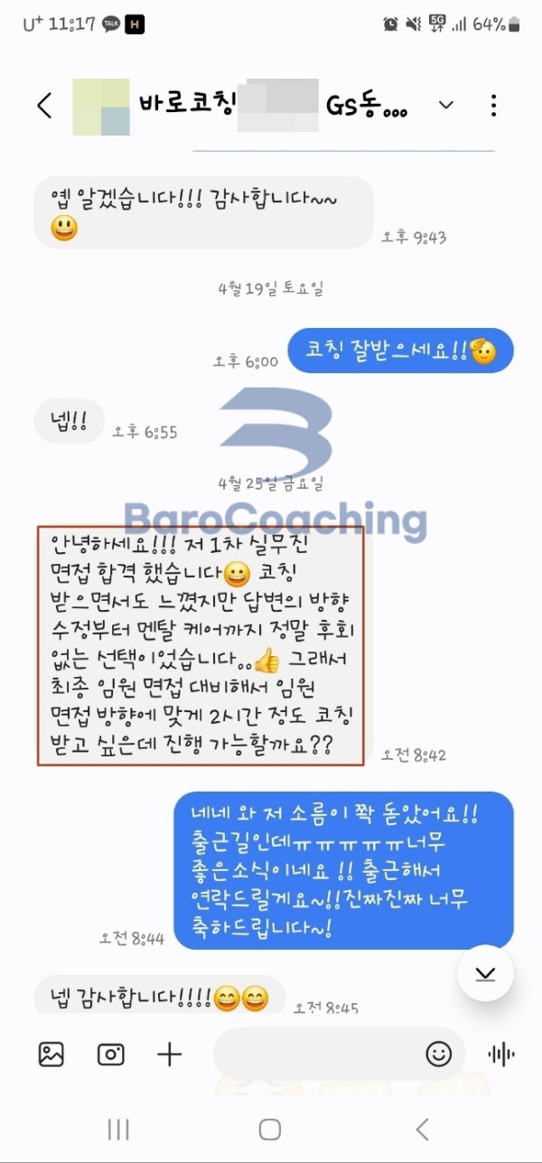 바로코칭을 통해 합격한 수강생들의 실제 문자/카톡 후기를 모았습니다.