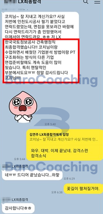바로코칭에서 컨설팅 받은 학생의 한국국토정보공사 면접 합격 후기입니다.