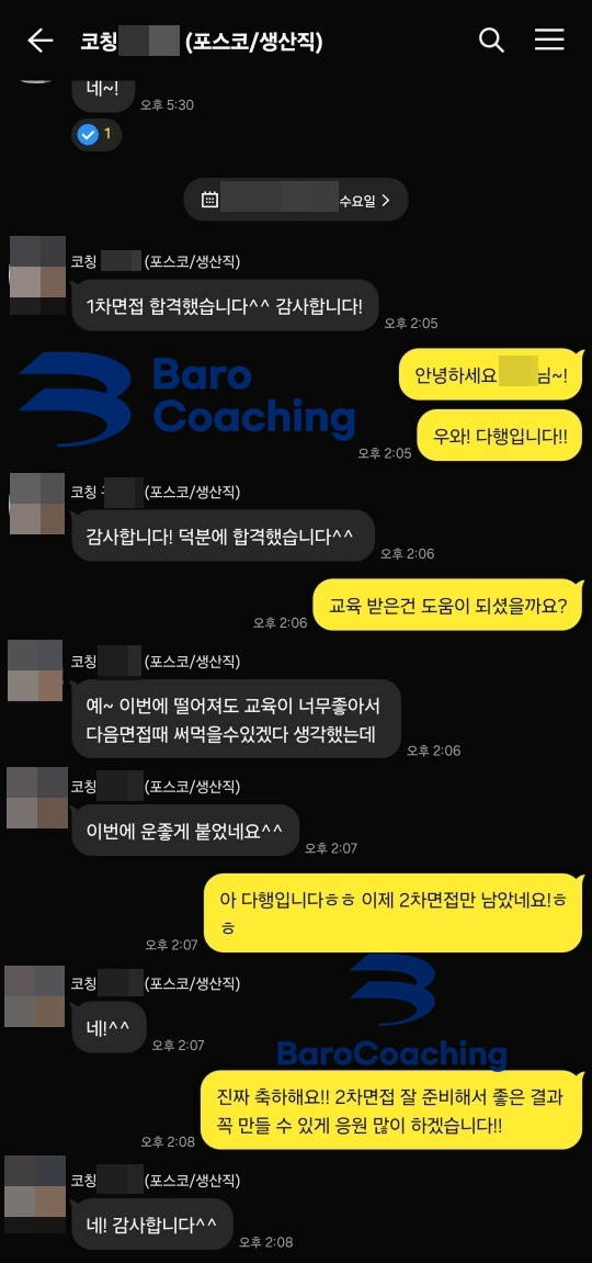 바로코칭을 통해 합격한 수강생들의 실제 문자/카톡 후기를 모았습니다.