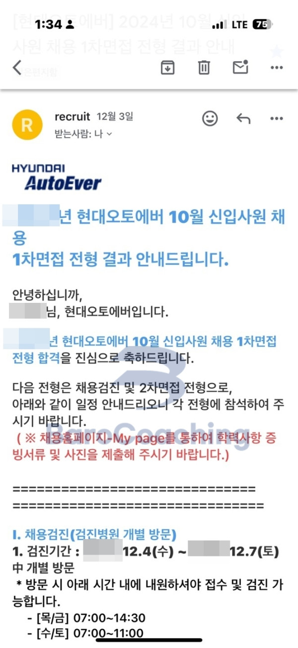 바로코칭에서 컨설팅 받은 학생의 현대오토에버 면접 합격 후기입니다.