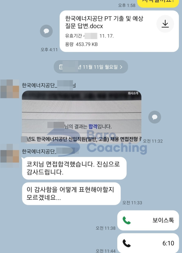 바로코칭에서 컨설팅 받은 학생의 한국에너지공단 면접 합격 후기입니다.
