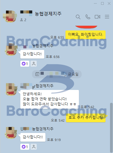 바로코칭을 통해 합격한 수강생들의 실제 문자/카톡 후기를 모았습니다.