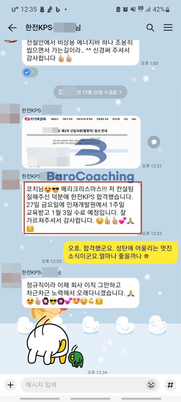 바로코칭에서 컨설팅 받은 학생의 한전KPS 면접 합격 후기입니다.