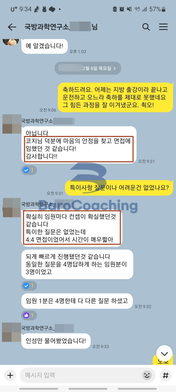 바로코칭에서 컨설팅 받은 학생의 국방과학연구소 면접 합격 후기입니다.